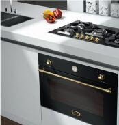 Электрический варочный центр с двумя духовками, фурнитура золотого цвета.