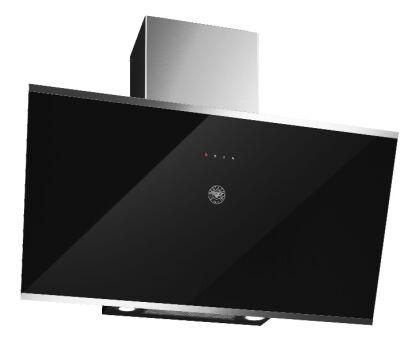 Bertazzoni KV90MOD1NA — наклонная вытяжка шириной 90 см с креплением к стене предназначается для установки над варочной панелью увеличенного размера. Фронтальная панель изготовлена из нержавеющей стали и черного стекла, что позволяет устанавливать эту вытяжку в кухнях в современном стиле. Максимальная производительность модели составляет 700 м3/ч и позволяет удалить загрязнения воздуха в просторной кухне. Модель способна работать в режимах отвода и рециркуляции. Три скорости всасывания, а также интенсивный режим для устранения особо сильных загрязнений, можно выбрать при помощи сенсорных элементов управления на фасаде изделия. Максимальный уровень шума составляет всего 69 дБ.